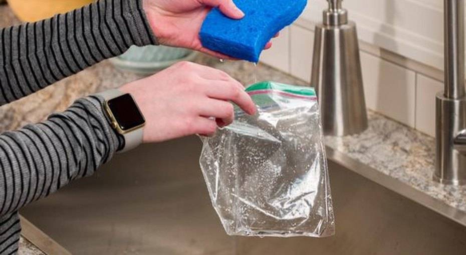 Вымочите губку в воде, поместите ее в пластиковый пакет с молнией и оставьте в морозилке на пару дней.