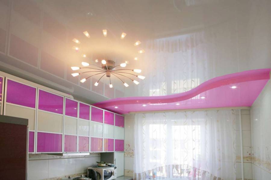Глянцевый потолок на кухне