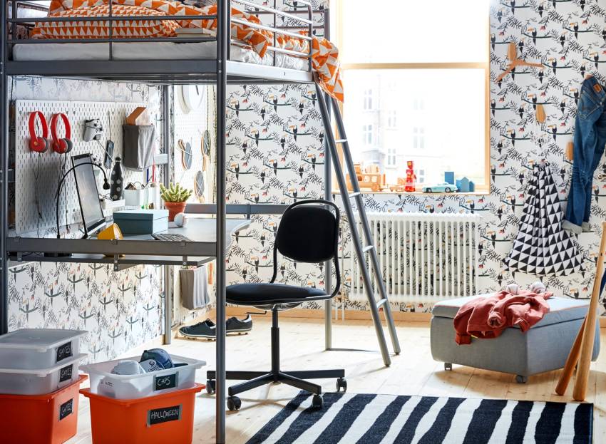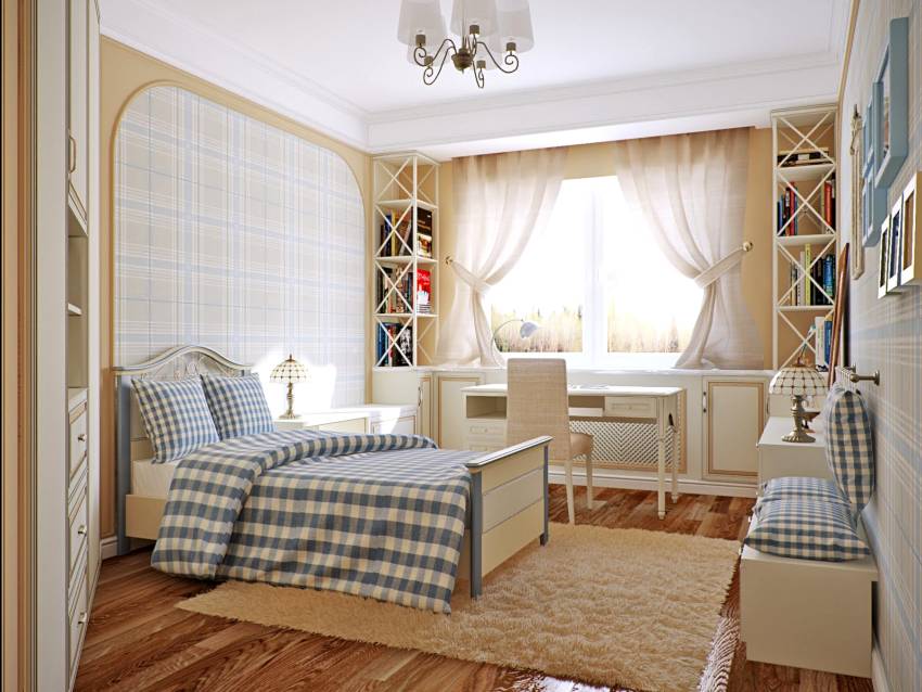 Помимо обоев, для отделки стен можно использовать краску или декоративную штукатурку, особенно если речь идет об оформлении интерьера комнаты для подростка. Цвет отделки можно менять, тем самым освежая помещение. В детской дополнительно рекомендуют организовать место для творчества и выполнить магнитную или грифельную стену.