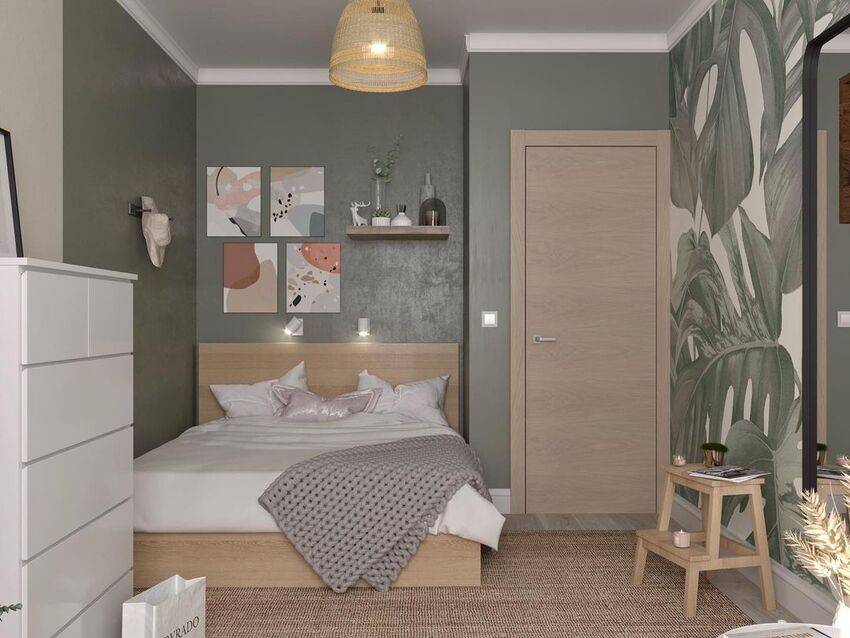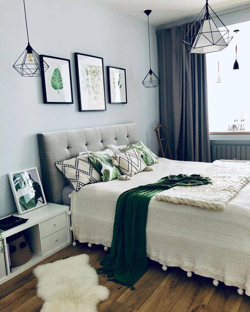 Этот естественный природный цвет отлично впишется в скандинавский дизайн спальни. Можно использовать такие оттенки как оливковый, мятный, фисташковый, сосновый, цвет лайма и другие.