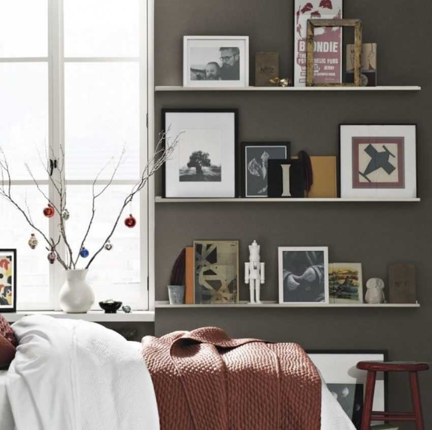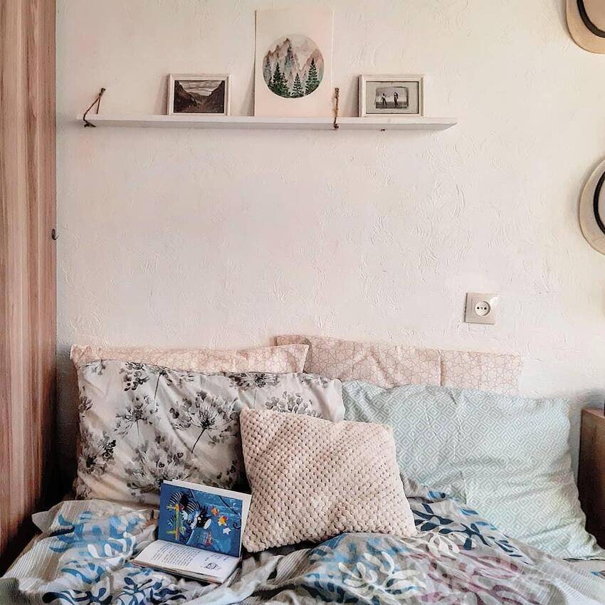 Иначе говоря, слишком габаритная, громоздкая мебель здесь не приветствуется. А вот небольшие столики, тумбочки, ящички, стулья, пуфики, настенные полочки и вешалки – самые подходящие предметы мебели для такой спальни.