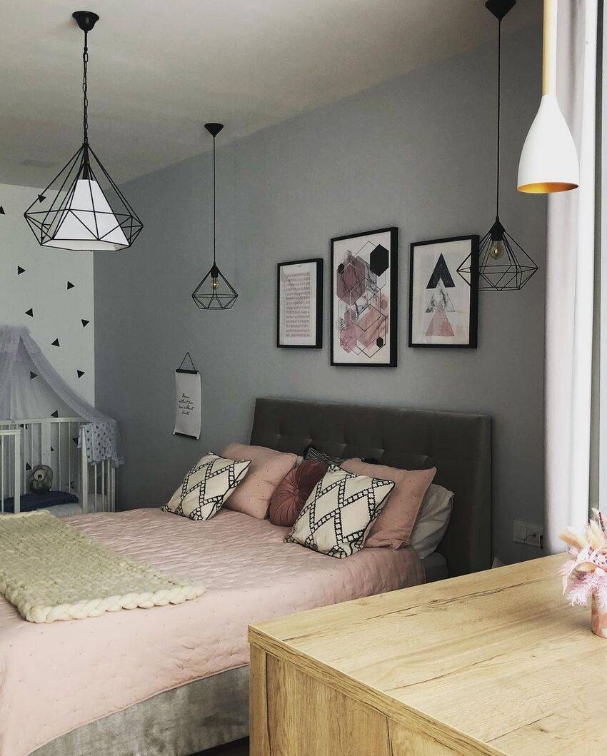 Это могут быть различные скандинавские принты или этнические мотивы на стенах, скандинавские обои в спальню, причудливой формы светильники из натуральных материалов.