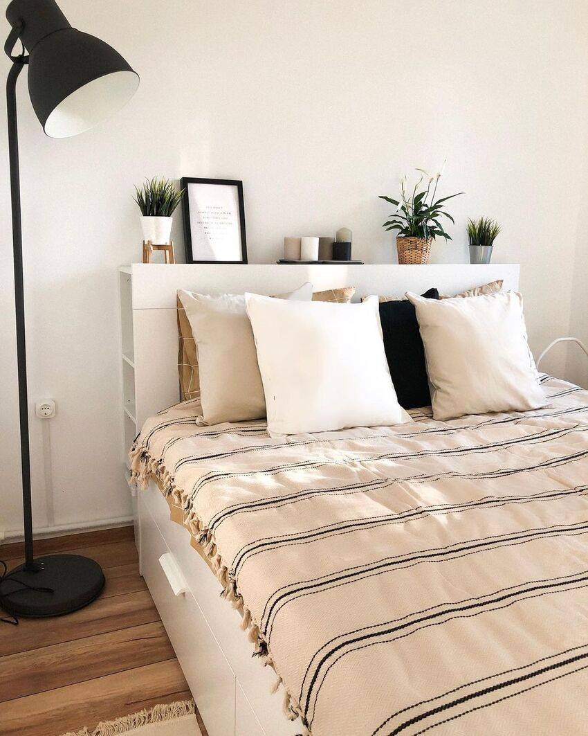 Цвет кровати обязательно должен гармонировать с цветом пола, стен и дверей. Еще раз уточним один очень важный нюанс: преобладающие тона в скандинавском стиле – светлые. Отсюда делайте выводы.