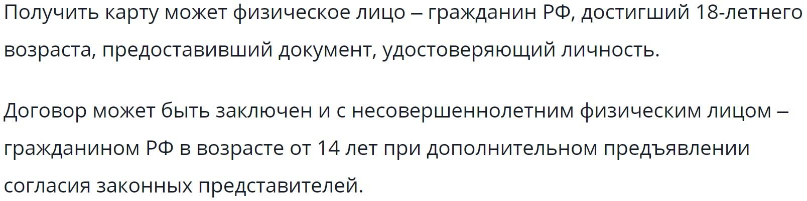 Поскольку на карточке хранятся деньги владельца пластика, а не кредитные средства, банк готов сделать послабления для своих клиентов. Оформить карту имеют возможность лица, которые не достигли совершеннолетия, но пребывают в возрасте старше 14 лет. Для этого им необходимо получить письменное согласие со стороны своих родителей или иных законных представителей.