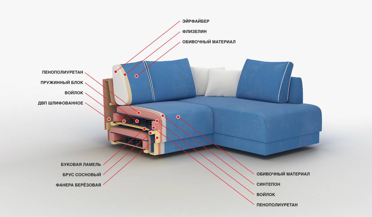 В вопросе, какие бывают наполнители для диванов, важно не только название материала, но и его характеристики. В зависимости от технологии производства пенополиуретан бывает различной жесткости и идет на наполнение всевозможных элементов