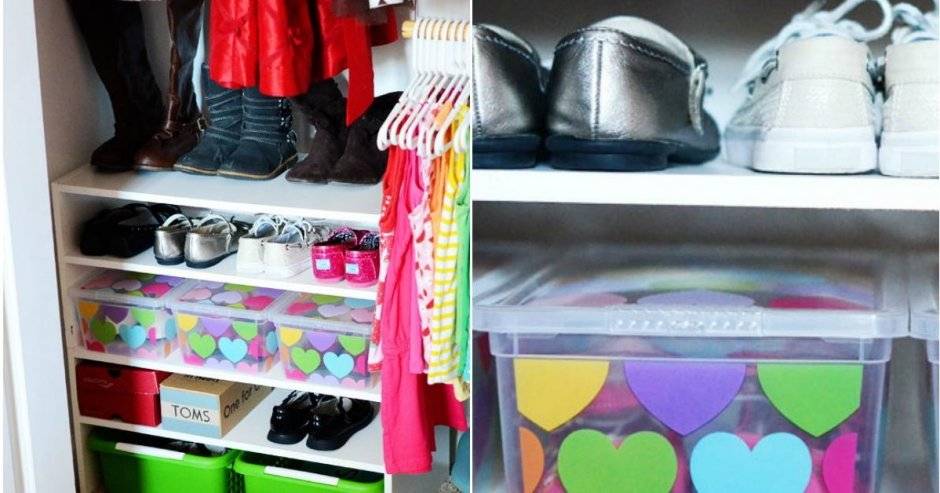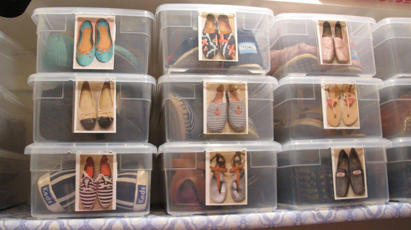 Прозрачные контейнеры из пластика позволяют рассортировать обувь по сезону, стилю, цвету. А главное – в них всё видно. Сами коробки ставим на дно шкафа. Ту обувь, которую носим реже всего, ставим вниз. В органайзерах безопасно хранятся не только кроссовки или туфли, но и трикотаж: скрученные в рулончики лонгсливы и футболки.