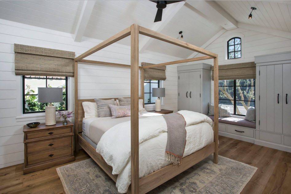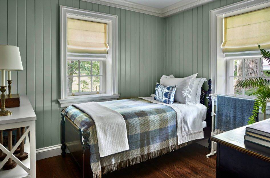 Площадь комнаты, выбранной для спальни, в таких домах в большинстве случаев не превышает 6-10 м². Но даже здесь можно организовать полноценную зону отдыха.