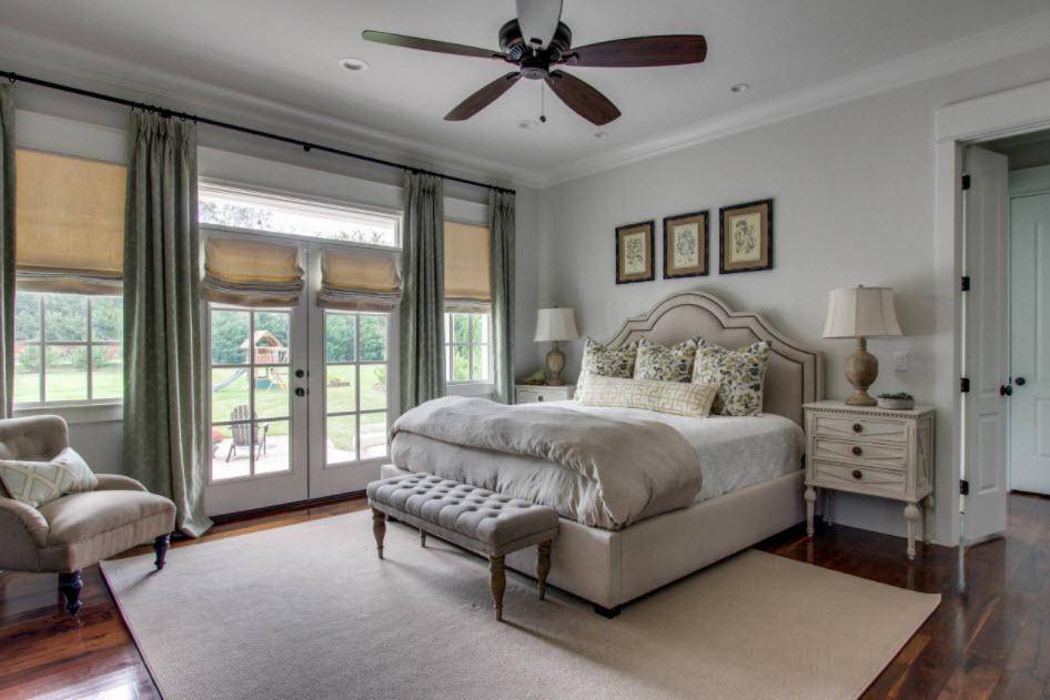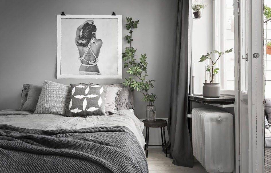 Для декора спальни стоит воспользоваться способностью цвета формировать идеальную гармонию с любым другим оттенком. Для обстановки этой комнаты рекомендуется для соседства с серым выбирать цвета с невыраженной насыщенностью. Наиболее подходящими будут самые светлые и блеклые оттенки, но при этом достаточно глубокие. Не менее эффектно сморятся монохромные варианты.