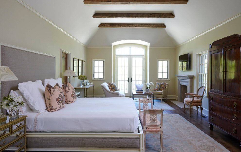 - Для того, чтобы дизайн не был монохромным и скучным, помещение разбавляют дополнительными оттенками или различными узорами и орнаментами, которые могут отображаться в текстиле, постельном белье, потолочной или стеновой отделке.