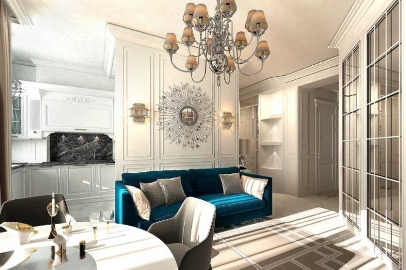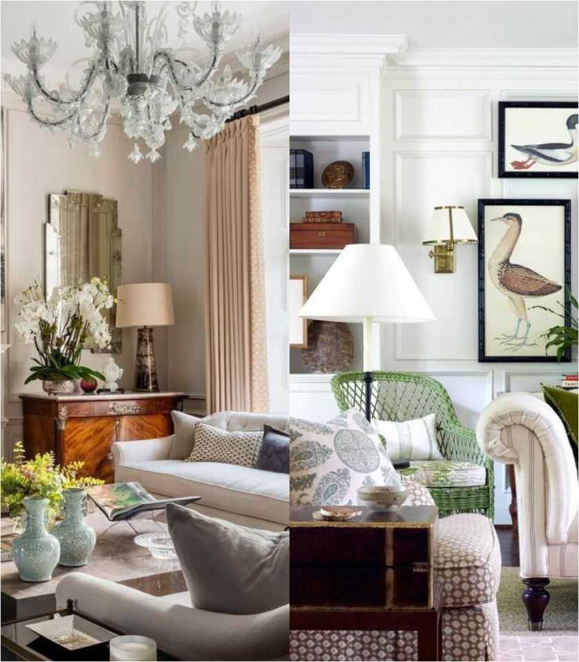 - зонирование: акцентирование внимания на одной группе предметов, например, на сочетании пары диван-столик в классическом стиле;