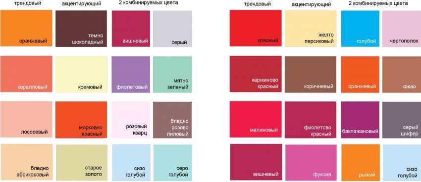 Пример схем сочетания красного и оранжевых цветов с другими подходящими оттенками