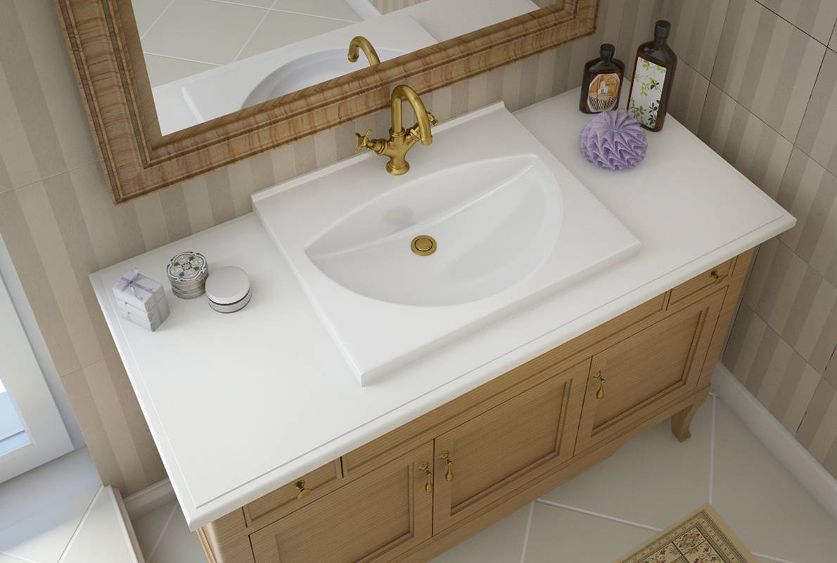 Преимущества накладных умывальников на тумбе