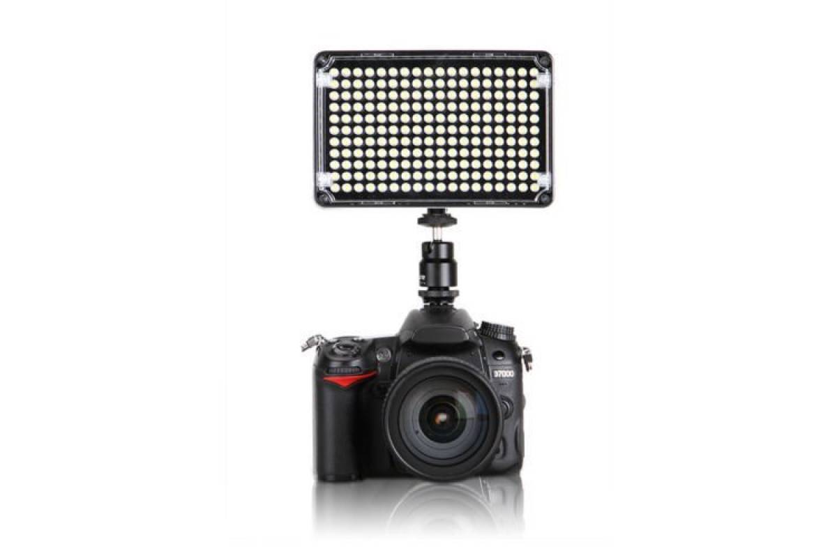 Системная вспышка едва ли может быть принята во внимание в качестве осветительного оборудования ввиду короткого времени выдержки. Вместо этого видеооператоры должны использовать что-то типа светодиодного прожектора NEEWER. 112 светодиодных лампочек создают равномерное освещение на большой площади с температурой свечения, близкой к «солнечному свету»