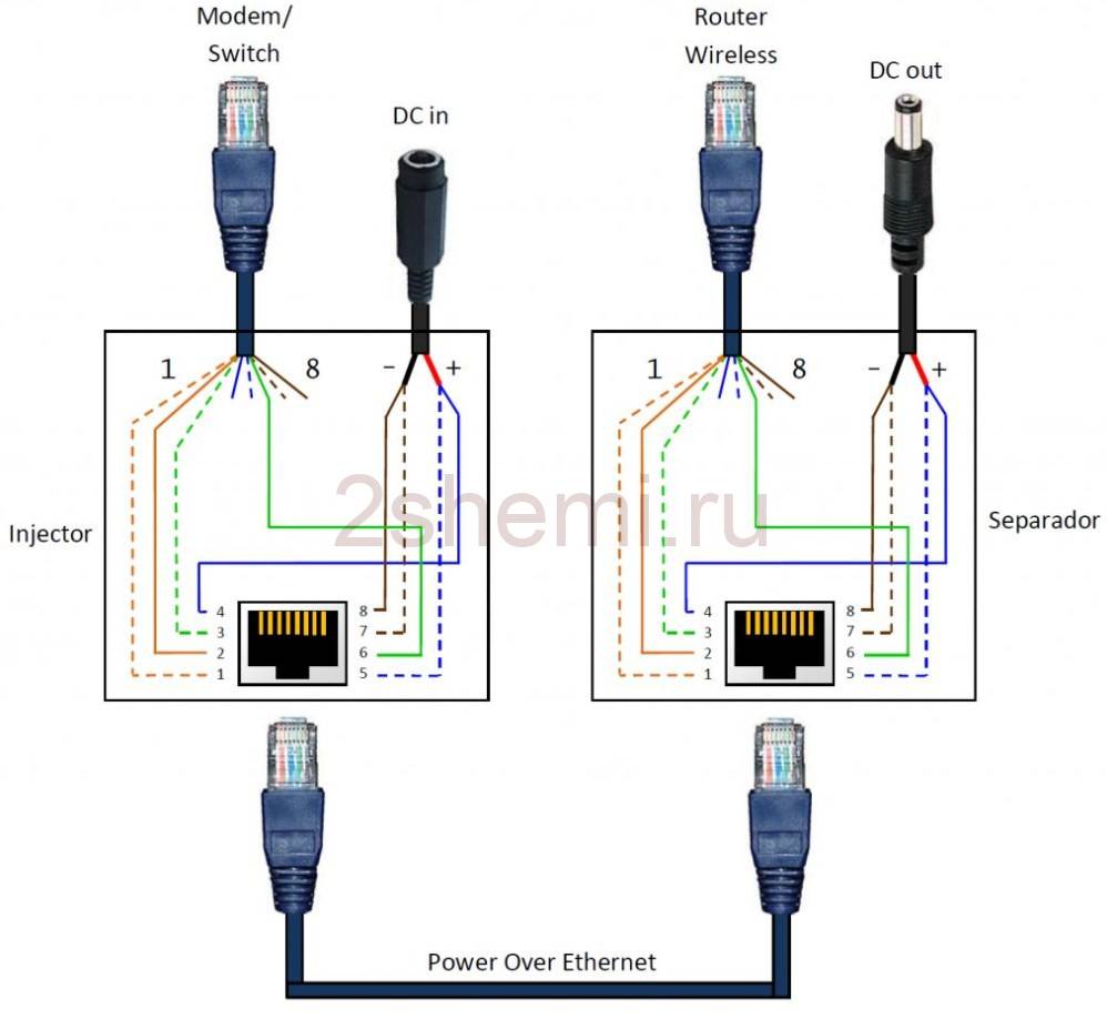 После проводится обжим при помощи кримпера, вторая сторона остается неизменной. Далее вставляется разъем питания и LAN в соответствующее гнездо ранее установленной камеры и проводится протяжка провода к месту, где будет находиться коммутатор, компьютер или регистратор, в зависимости от схемы подключения. Когда подключение камеры будет завершено, подключается провод питания к блоку питания с соблюдением полярности, естественно.