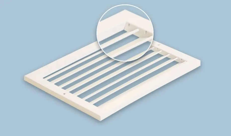 Эта конструкция также выполняет декоративный функции, но имеет более сложную решетку, которая эффективно помогает продвижению воздушных масс. Правда, из-за фиксированного угла защитных планок, устройство не может изменять свою пропускную способность. И если владельцу захочется поменять направленность воздушного потока, то ему придется приобрести другую модель.