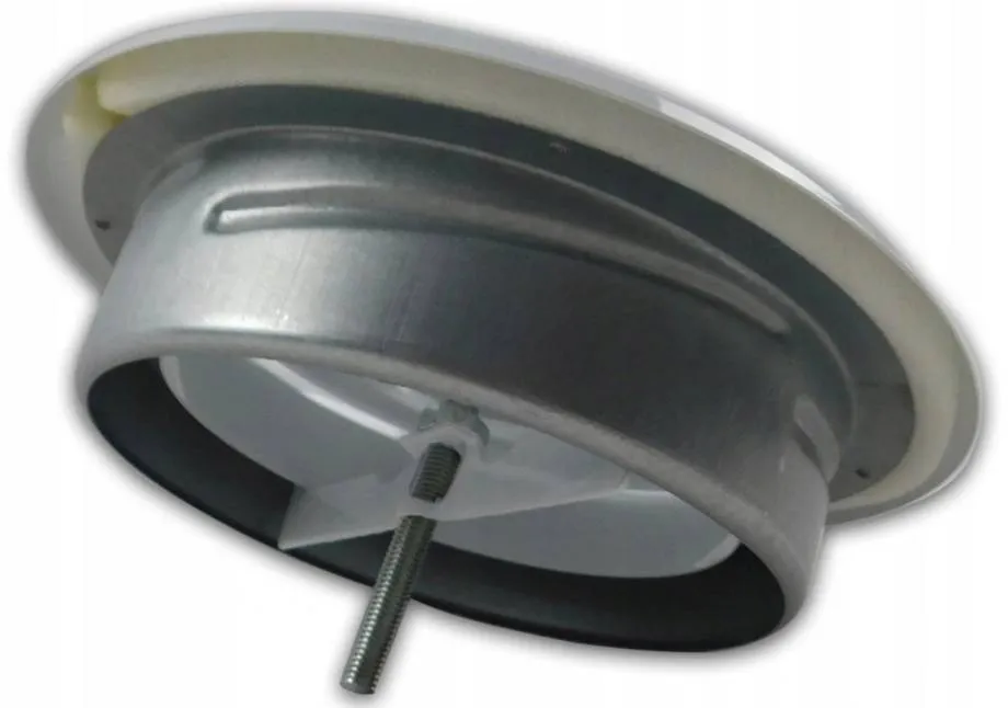 В вытяжном анемостате внешняя крышка имеет округлую, гладкую форму для эффективного устранения отработанного воздуха.