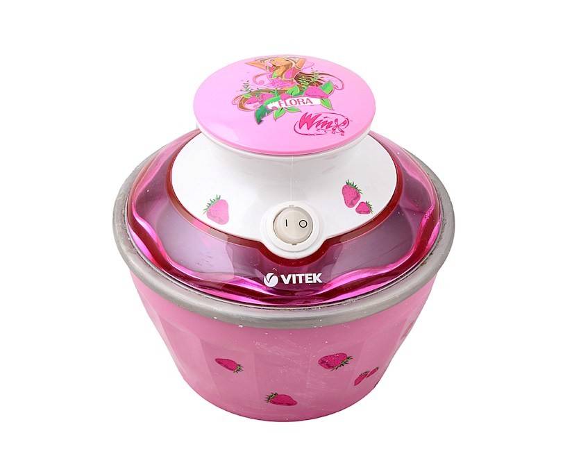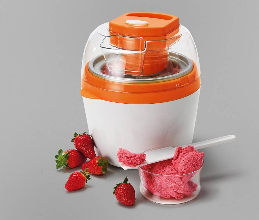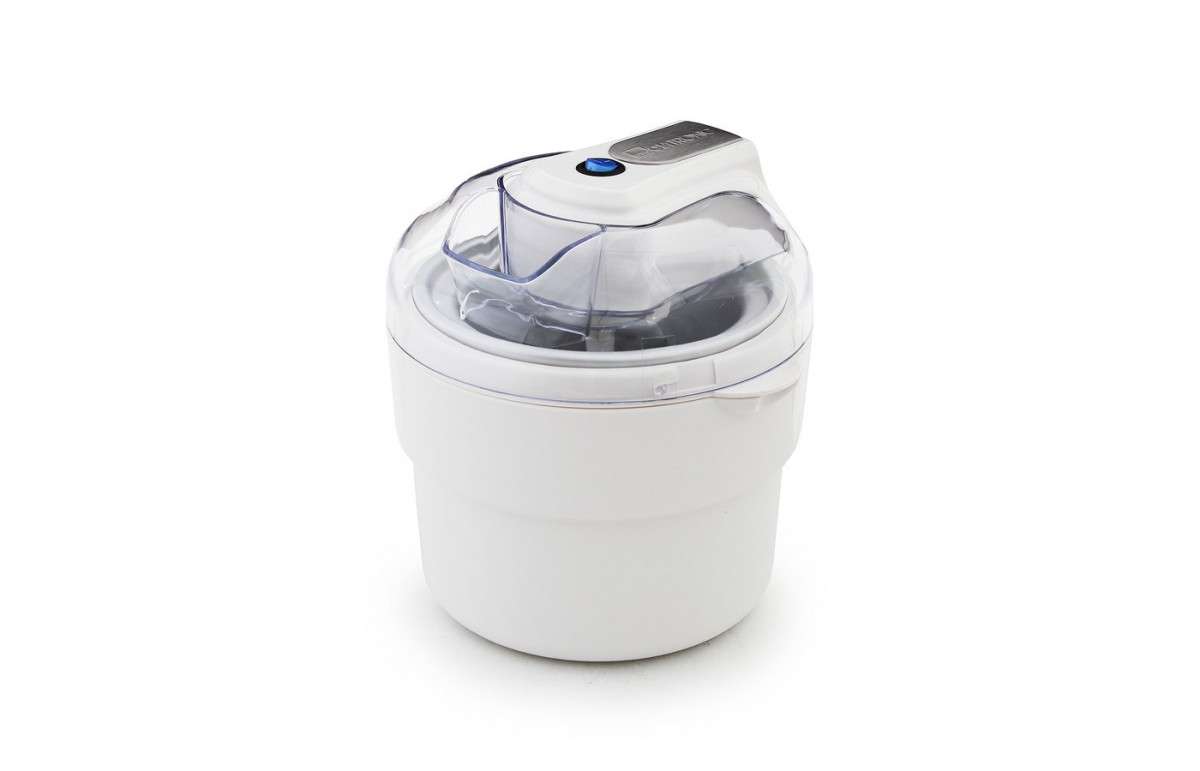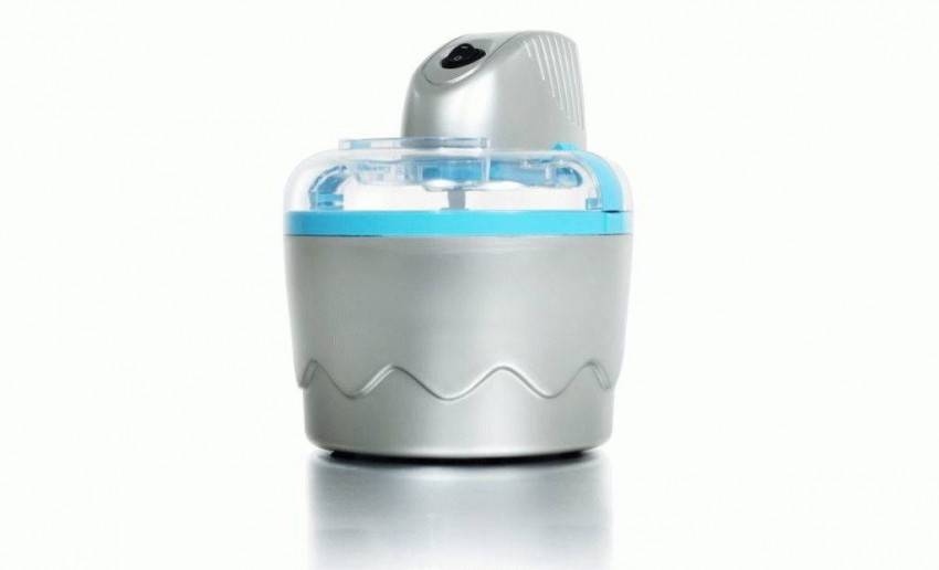 Перед вами полуавтоматическое устройство с чашей среднего объема (1,5 л). Сверху на пластиковом корпусе устройства находится переключатель для включения и выключения прибора, а также активации таймера. По мощности модель не уступает большинству аналогов (10 Вт). В отзывах пишут, что данная мороженица для дома отлично справляется с возложенными на нее функциями, а именно на ура готовит мороженое по множеству рецептур. С нею предельно просто обращаться, она стоит недорого, легко моется – одним словом, все что нужно для неискушенного пользователя.