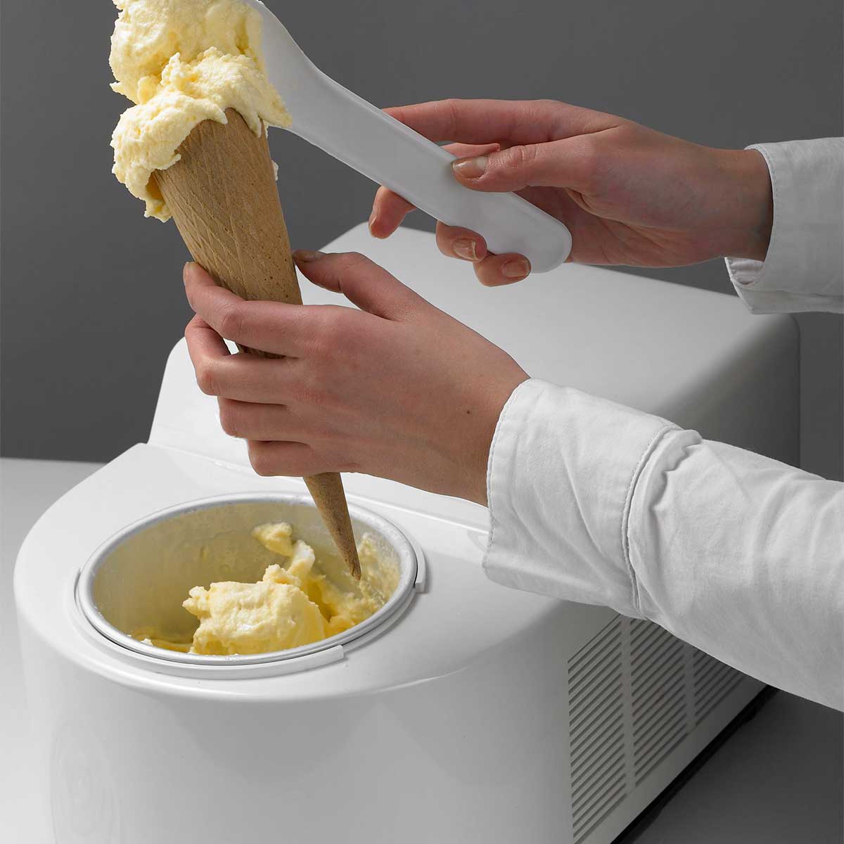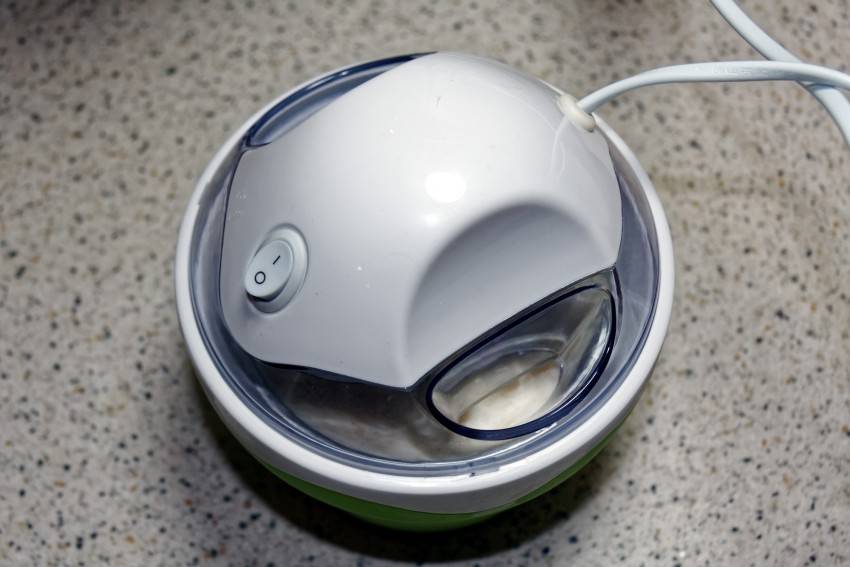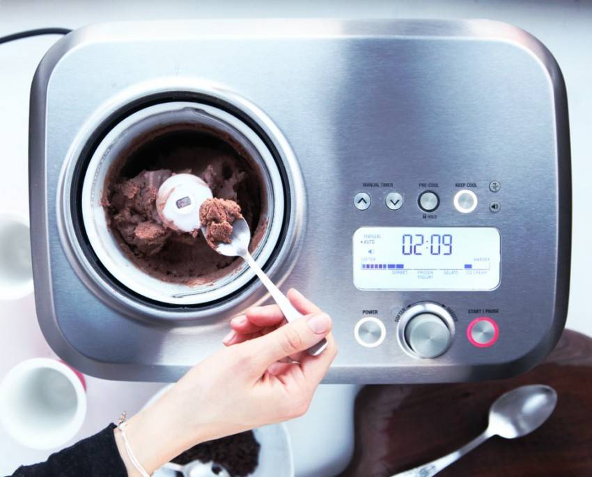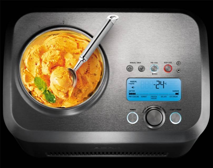 Прибор не требует многочасового предварительного замораживания чаши в морозильнике, а также гарантирует постоянство температуры при приготовлении