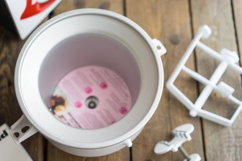 Кроме этого, в комплекте может идти дополнительная чаша, стаканчики для мороженого и прозрачное окошко, через которое можно наблюдать за процессом.