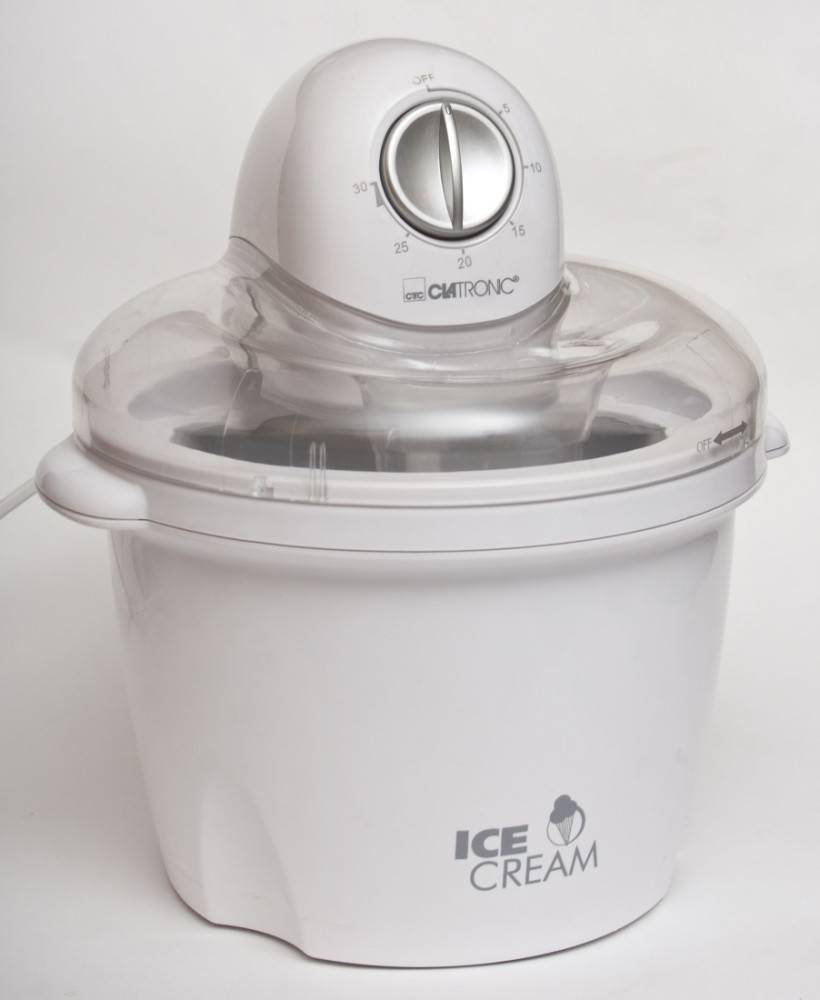 Маленькая, простая мороженица от Clatronic имеет разборный корпус, поэтому хозяйки хвалят модель за легкость обслуживания. Сквозь небольшое окно в крышке можно также наблюдать за приготовлением десерта или добавлять необходимые ингредиенты, когда устройство уже работает. Прорезиненные ножки исключают скольжение прибора по поверхности стола, а длинный прямой шнур позволит расположить фризер на достаточном расстоянии от розетки. Таймер приготовления рассчитан от 20 до 40 минут, объем чаши составляет всего 1 литр, что делает устройство компактным и позволяет сэкономить место.