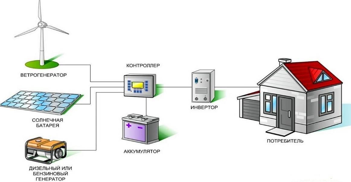 Создать полностью автономную систему электроснабжения с использованием одного источника альтернативной энергии (солнечная электростанция, ветровой генератор), достаточно сложно, что обусловлено недостатками каждого из видов подобных установок.