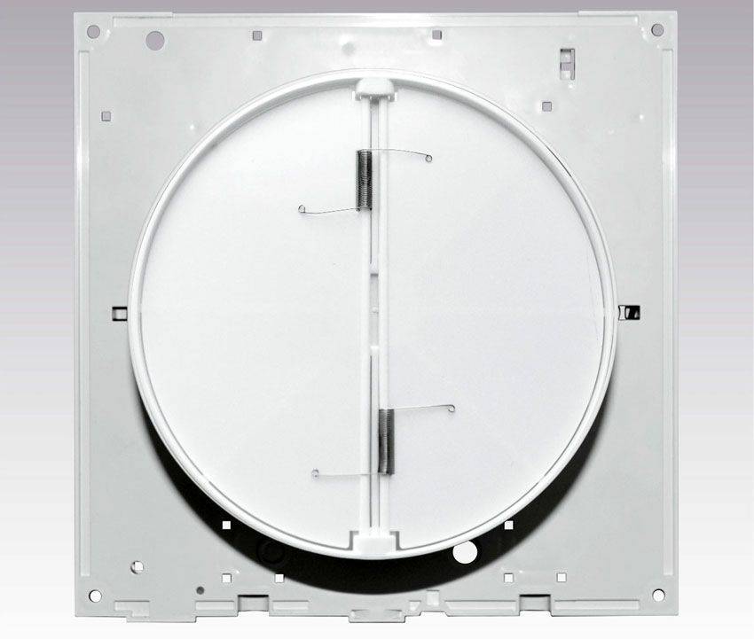 Вытяжной вентилятор с обратным клапаном предотвращает проникновение пыли и воздуха из вентиляции в помещение. Также он оснащается таймером задержки отключения в интервале от 2 мин до получаса. Это позволяет оставлять устройство включенным, не боясь, что оно продолжит работать без присмотра. Экономичный электродвигатель защищен от влаги, а крыльчатка специальной формы отличается бесшумностью. Чтобы устройство было легче интегрировать в дизайн, производителем был предусмотрен широчайший выбор цветовой гаммы фасадов. По желанию вентилятор можно купить в золотом, серебристом, черном или белом оформлении.