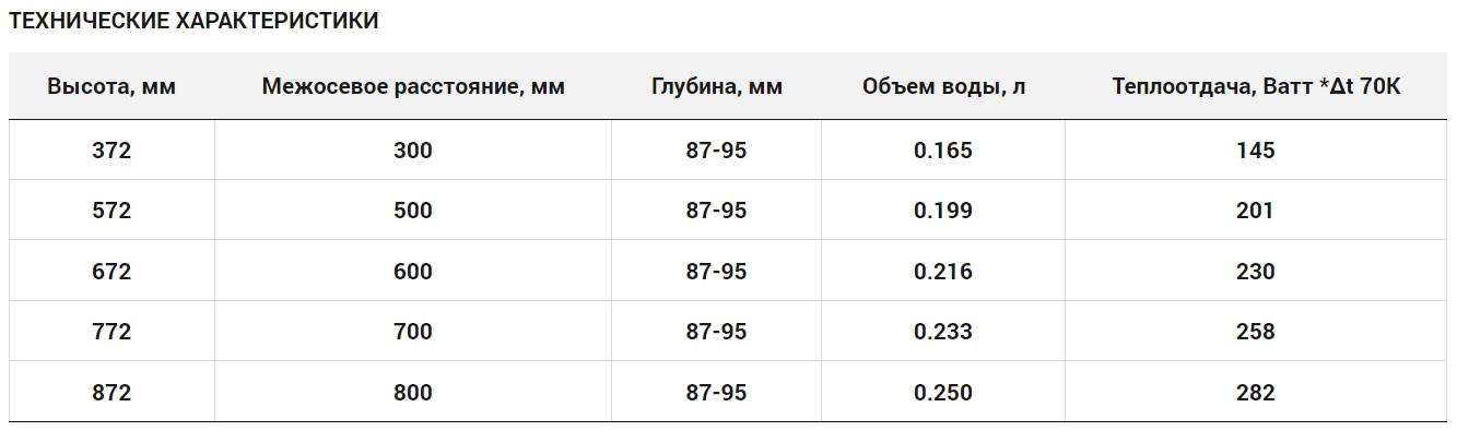 К техническим характеристикам батарей относятся габариты. Высота радиаторов составляет от 20 до 80 см. Чтобы подобрать радиатор нужного размера, надо учесть расстояние между основанием окна и полом и вычесть из этого числа 20 см. Ширина находится в непосредственной зависимости от места, где будет установлен прибор.