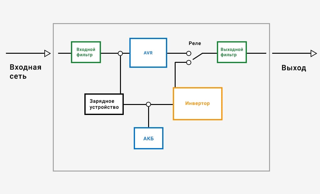 Существует несколько типов ИБП, отличающихся сценариями работы: