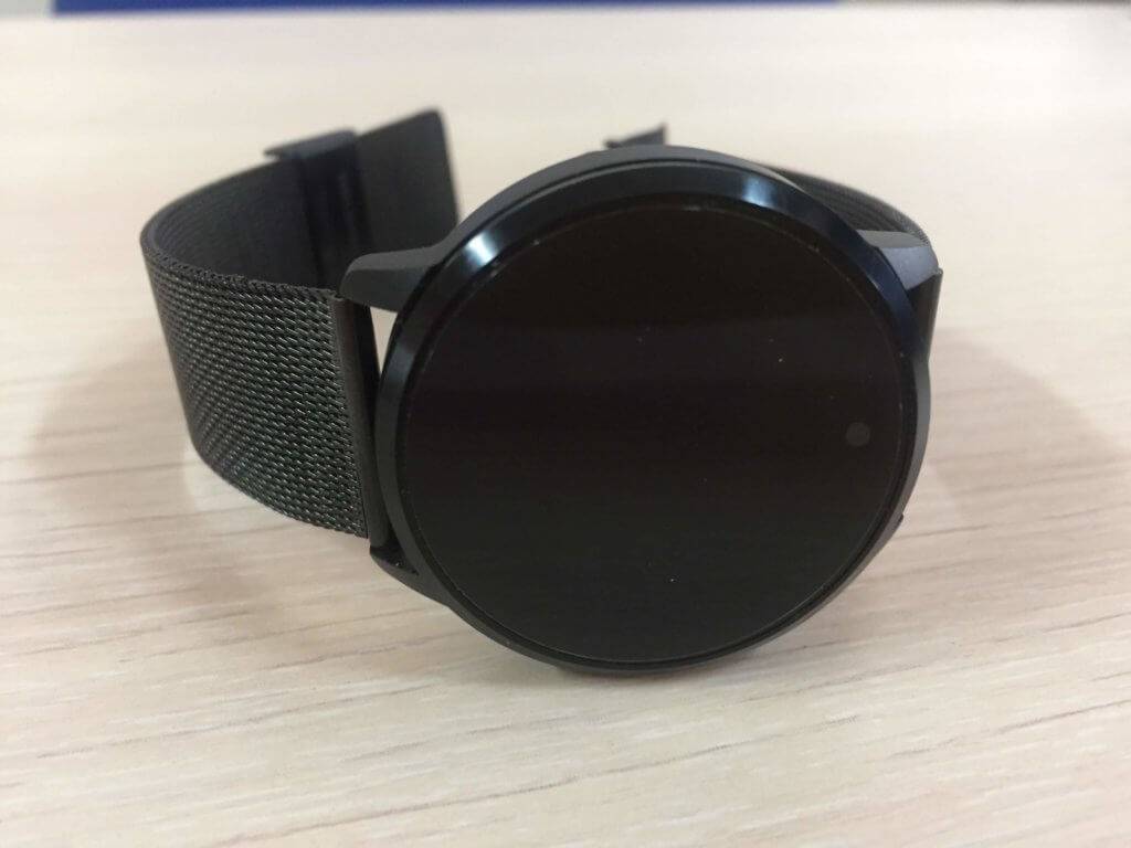 Дисплей здесь не полностью круглый. В нижней его части есть небольшой срез, или, как его еще называют, шина, на котором размещена сенсорная кнопка. Как раз с помощью этой кнопки и выполняется все управление устройством. Физических кнопок у этого браслета нет.
