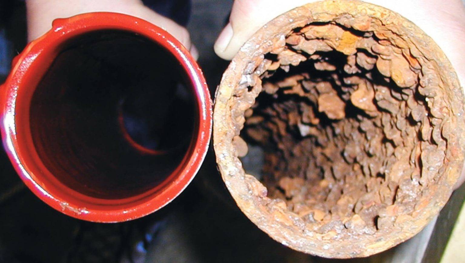 - Осаждение на стенках канализационных труб кальция и ржавчины. Это касается в первую очередь старых чугунных труб, ещё советского производства.