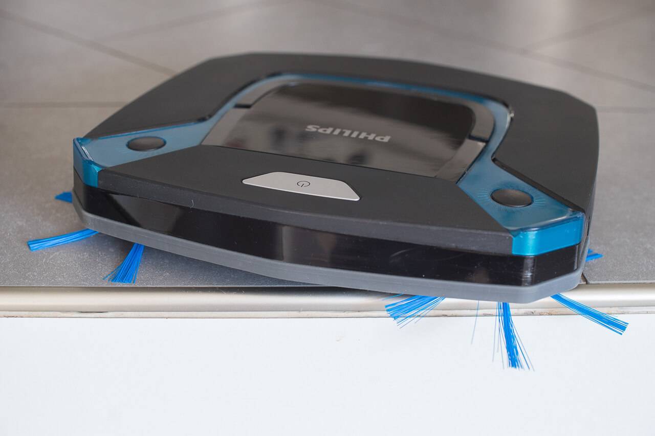 Если на пути у пылесоса возникают перепады высот, например, кромка ковра или металлическая бордюрная полоса, то он легко преодолевает их. Однако замечено, что полезная «игрушка» может забираться и на высокие пороги