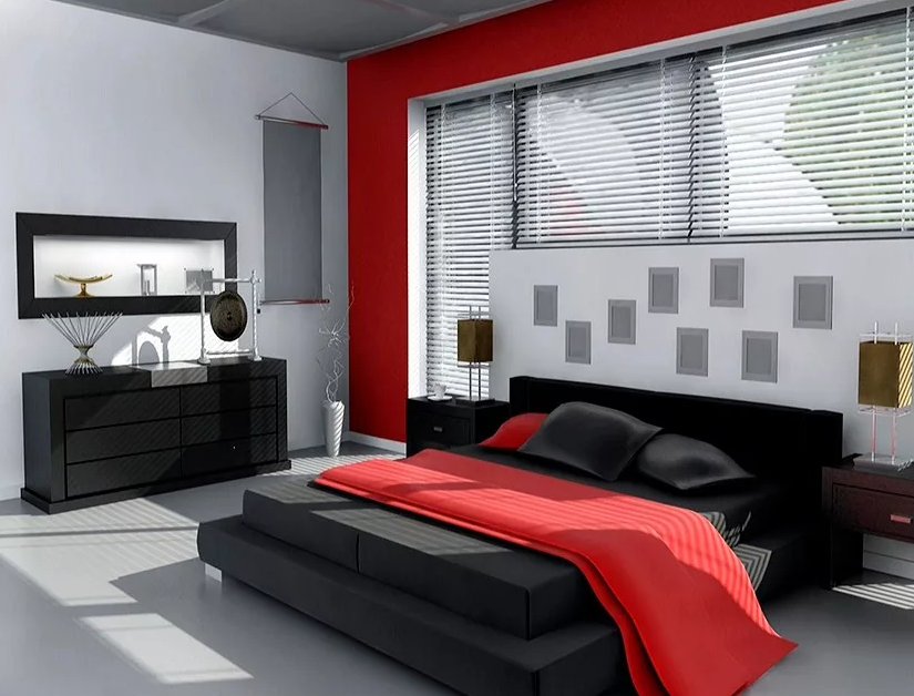 Практически все современные направления в дизайне сводятся к умеренным цветовым сочетаниям в интерьере. Чёрный цвет встречается в спальнях в стиле индастриал, . Без него не обходится столь популярный в наши дни минимализм. В дизайне спальни этот цвет можно встретить и как доминирующий, и как компаньон белого цвета.