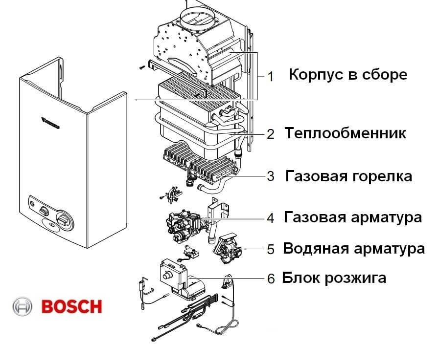 Горелка газовой колонки предназначена для обеспечения равномерного горения топлива. Бытовые модификации отличаются сравнительно небольшой мощностью, которой достаточно для работы проточного водонагревателя, устанавливаемого в квартире или частном доме. В горелке смешивается воздух и газ для их последующей подачи в камеру сгорания. Пламя контролируется автоматикой. В случае поломки оборудования, утечки в системе подачи топлива газовая колонка Бош гаснет.