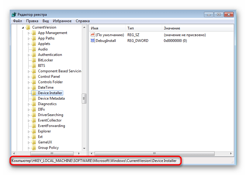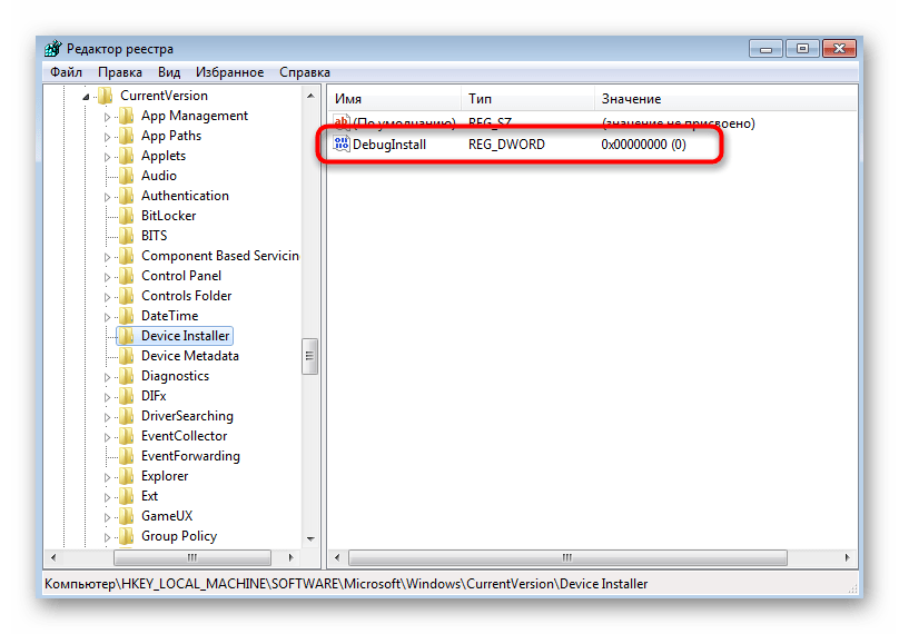 Отыщите в конечной директории параметр «DebugInstall» и нажмите по нему дважды для открытия свойств.