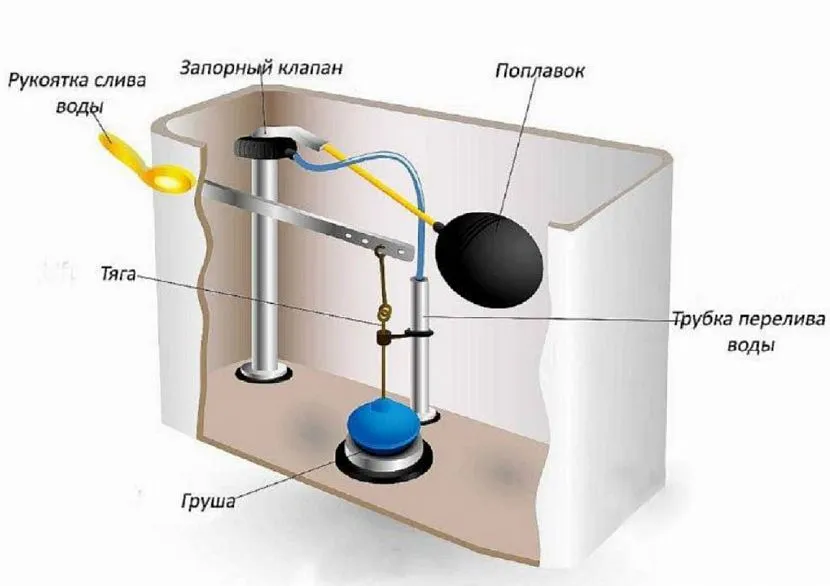 Сливная конструкция в бачке Источник uk.erch2014.com