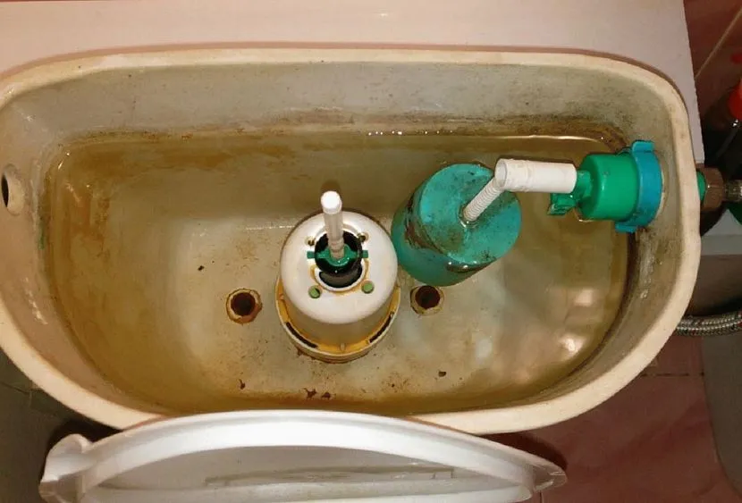 - Постоянно бегущая вода – это ржавчина на чаше унитаза. Все из-за примесей, содержащихся в ней. Плюс какая-то часть железа попадает в ток с труб, которые чаще всего не оцинкованные, потому со временем и ржавеют.