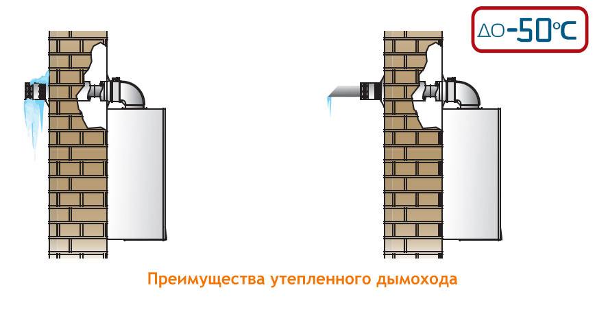 - Пониженная температура продуктов горения (менее +100 ºС).