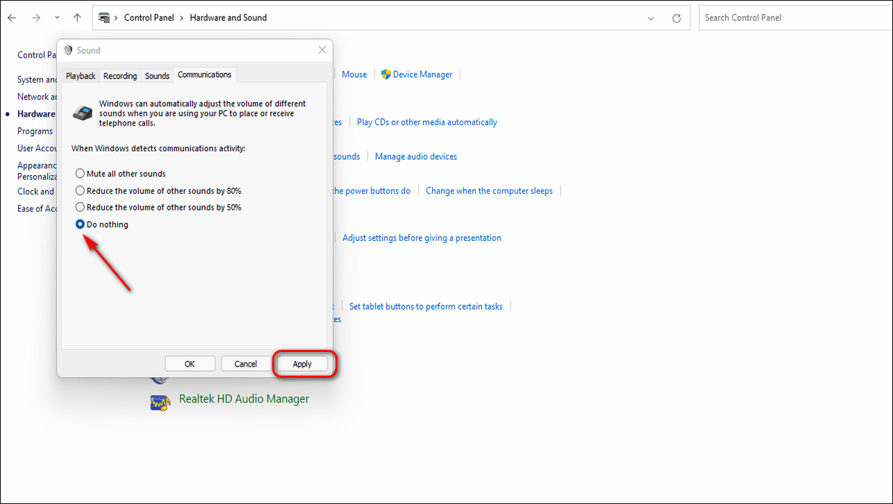 По умолчанию Windows может автоматически регулировать громкость различных звуков, когда вы используете компьютер для звонков. Часто это приводит к снижению уровня громкости на выходах основных динамиков. Следуйте этим простым шагам, чтобы решить эту проблему.