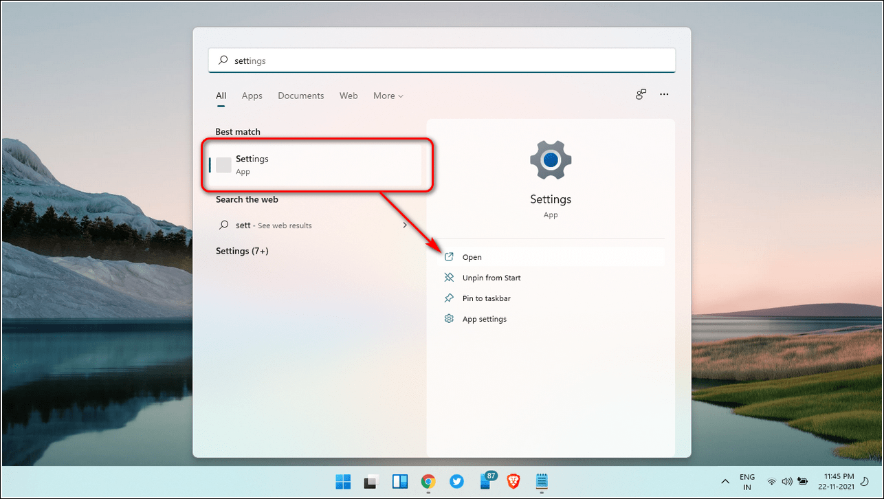 Нажмите клавишу Windows, найдите Настройки и откройте его.