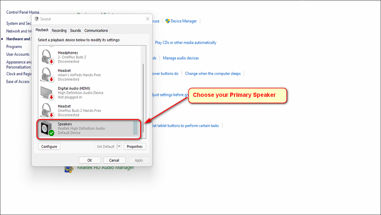 - Найдите свой основной динамик и дважды щелкните по нему.