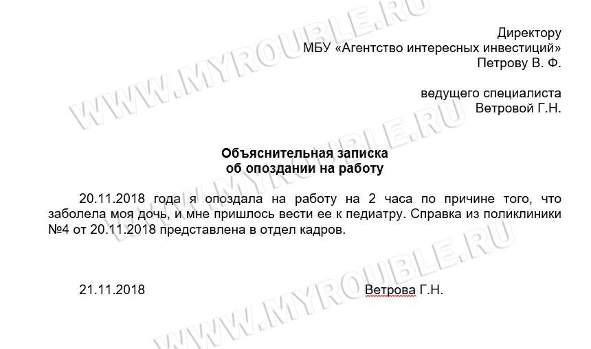 Образец объяснительной записки на работу об опоздании на работу
