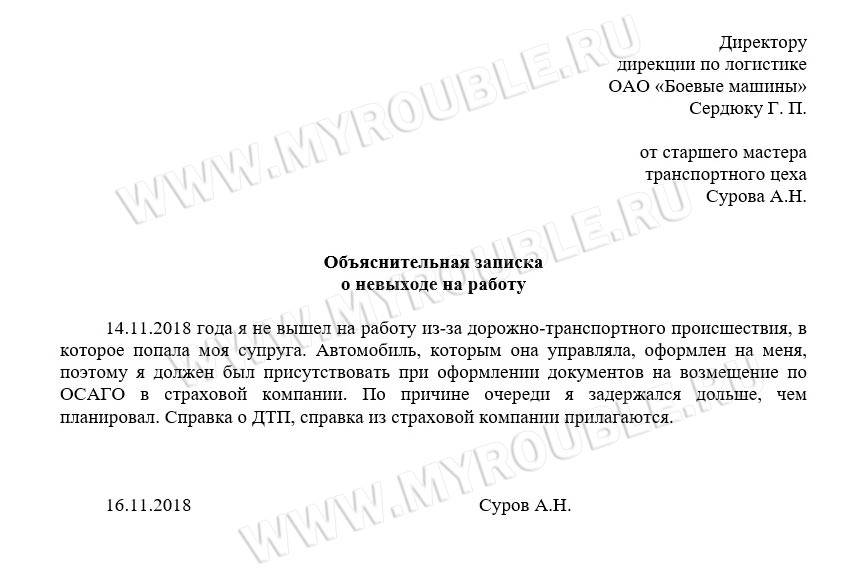 Образец объяснительной записки на работу