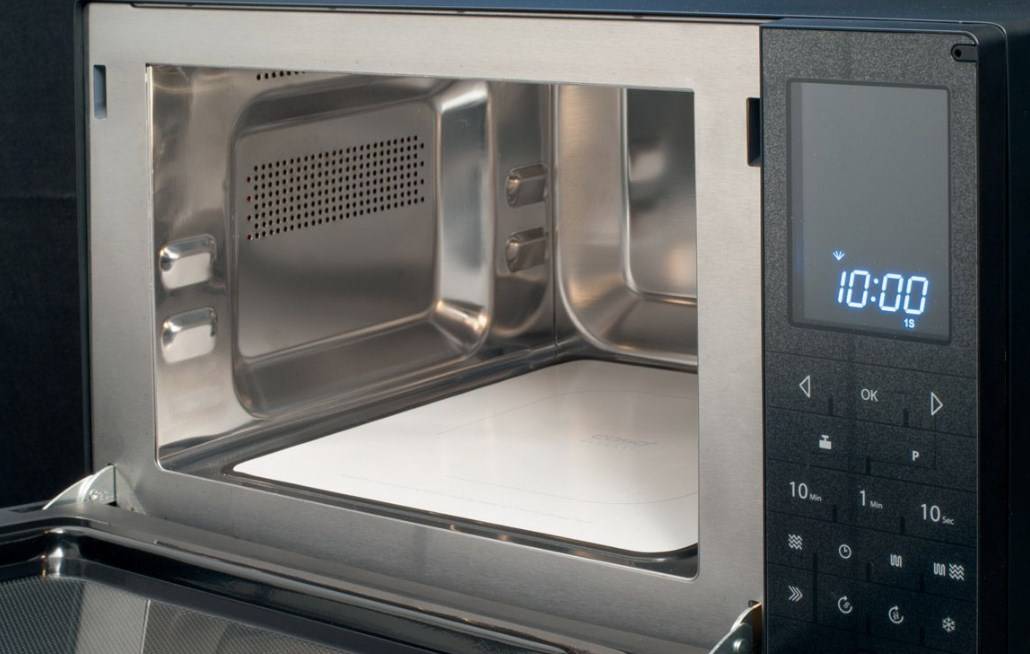Камера из нержавеющей стали — неплохой вариант, ведь материал без проблем переносит работу микроволновой печи в любых режимах на самых высоких температурах. Но взамен этого добиться идеальной чистоты ежедневно будет довольно нелегко.