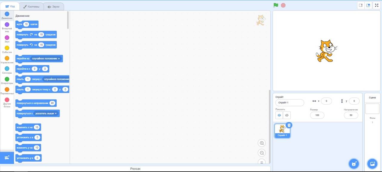 А теперь давайте поближе познакомимся с такими важными понятиями этого визуального языка программирования, как спрайт и блок.