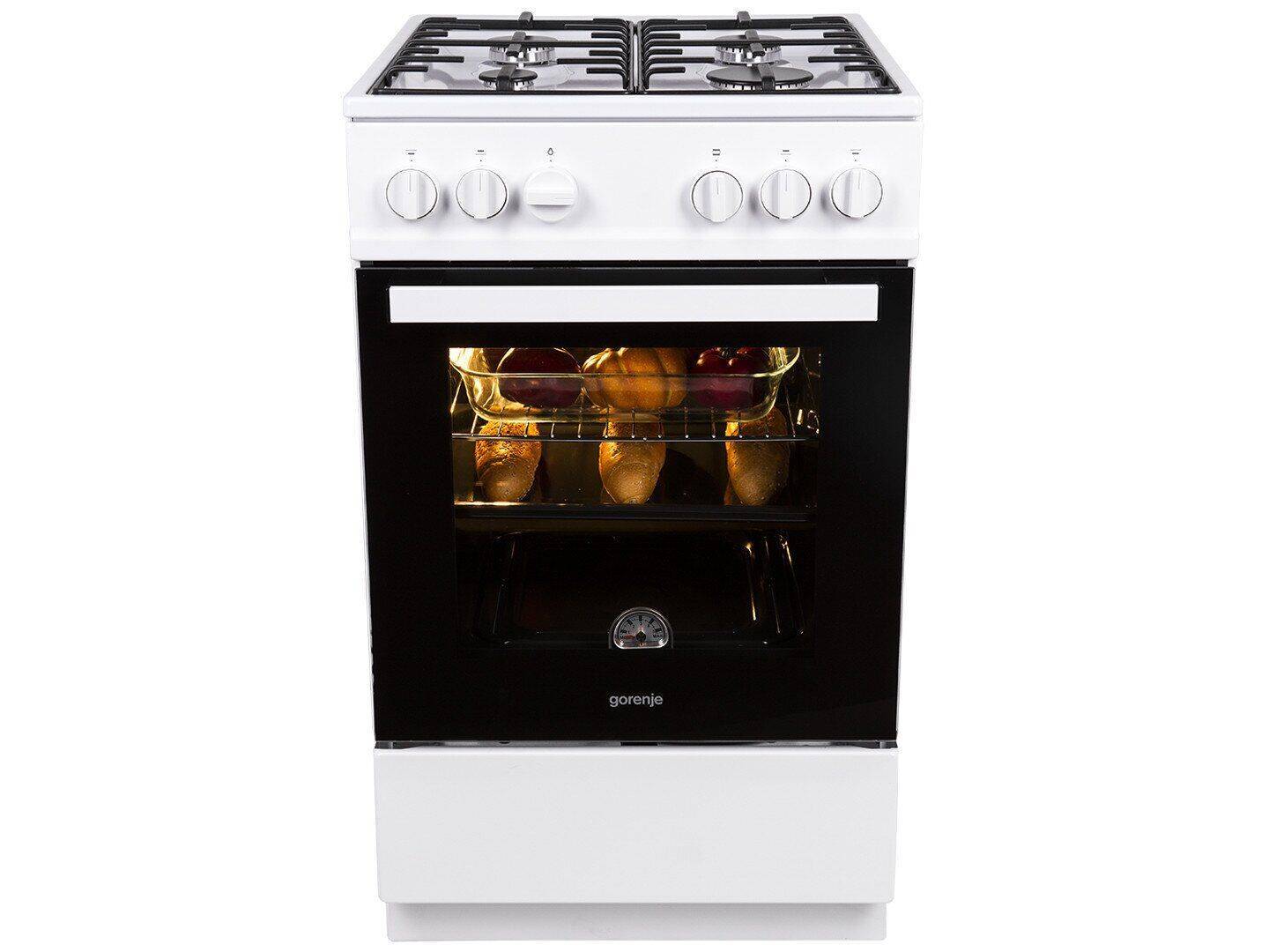 Модель имеет небольшую ширину и подходит для малогабаритных кухонь. При этом объем духового отсека не уступает стандартным устройствам. 4 газовых горелки обеспечивают быстрый нагрев пищи и воды. Интенсивность пламени легко контролировать, что поможет избежать пригорания блюд. Лаконичный дизайн подходит для интерьера, выполненного в любом стиле.