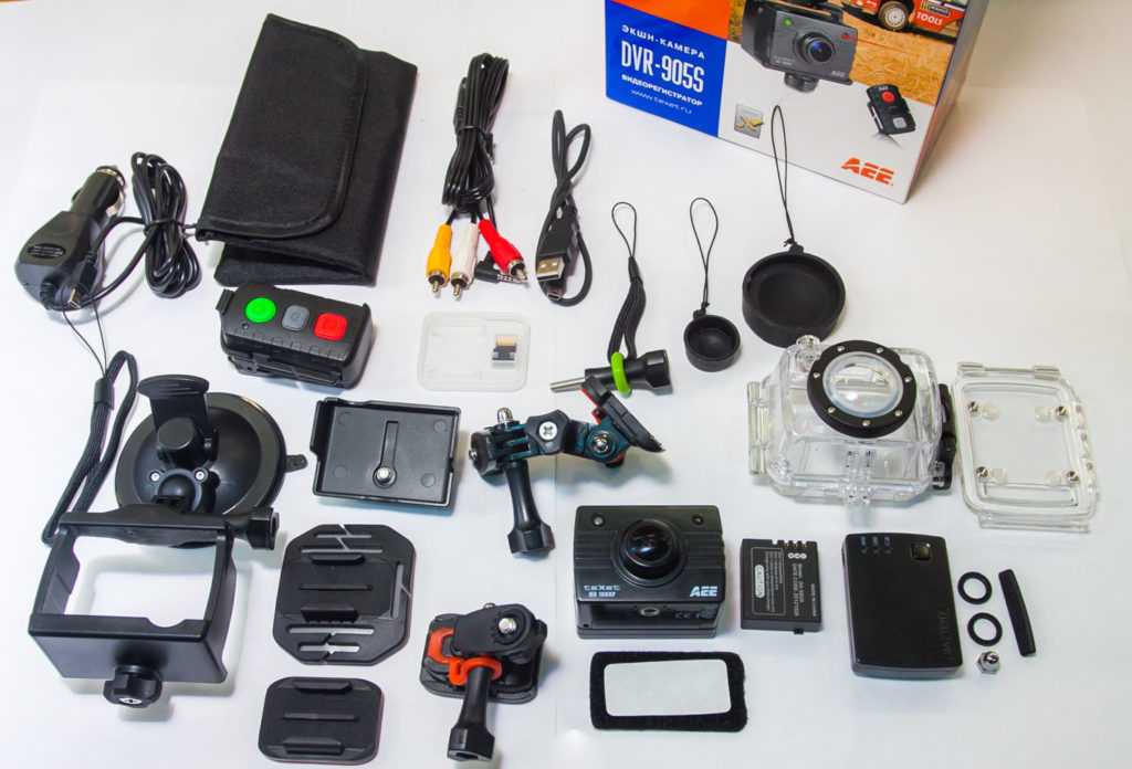Видеорегистрирующий прибор в сочетании со спортивной видеокамерой может иметь различную комплектацию в зависимости от модели и марки производителя, а также стоимости и функционального набора. Аппаратура action-видеорегистрации должна включать следующие компоненты: