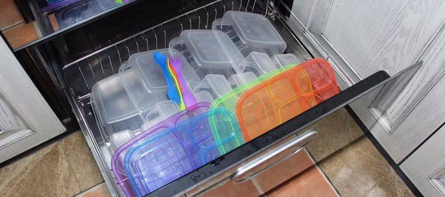 Посудомойка отлично отмывает термостойкие пластиковые емкости и контейнеры, пластиковые разделочные доски, и различные пластиковые и силиконовые большие и маленькие формы. Данный вид посуды очень легкий. Поэтому ее лучше надежно закрепить, чтобы случайно она не переместилась.