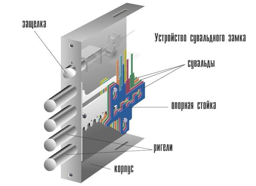 Сувальдный механизм разбирается следующим образом: