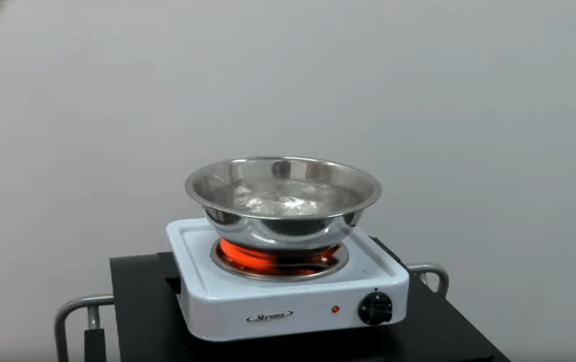 ![]() | Готовим водяной пар. Ставим на огонь металлическую емкость с водой и доводим ее до кипения. |
