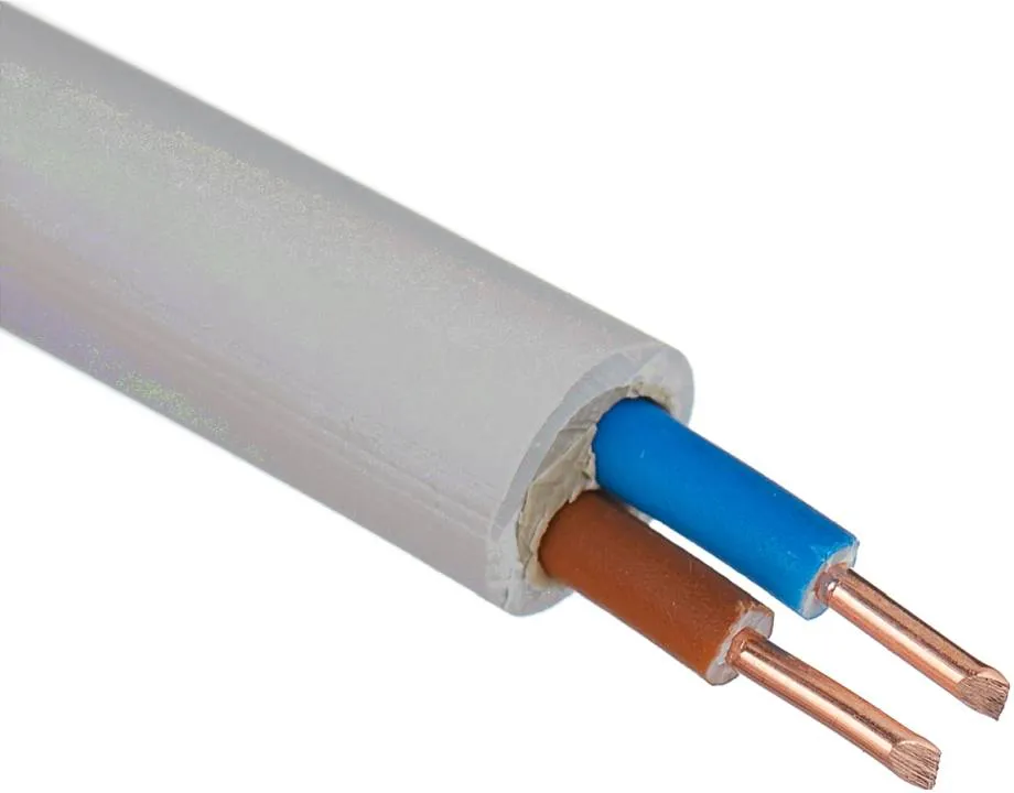 ВВГ-пнг – это плоский силовой провод, в котором 2-3 жилы. Его оболочка из ПВХ и изоляция малогорючи. Кабель используют в стационарных электроустройствах.